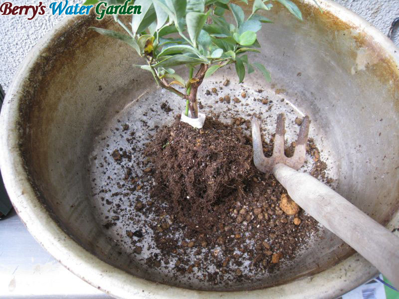 根鉢のままだと根がサークリングして植え付け後の成長が良くないので、根鉢を崩します。 |