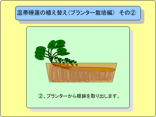 | 項目 | 温帯睡蓮の植え替え(プランター栽培編) そのB |