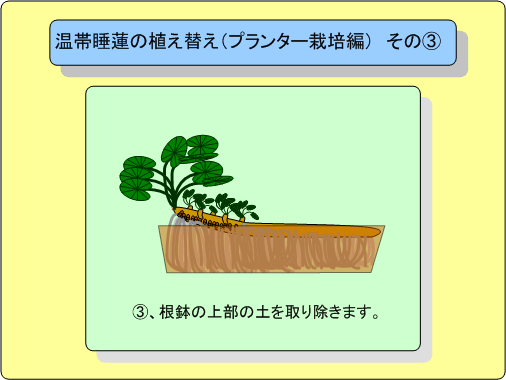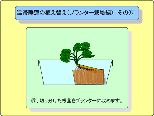 温帯睡蓮の植え替え(プランター栽培編) そのC | ||