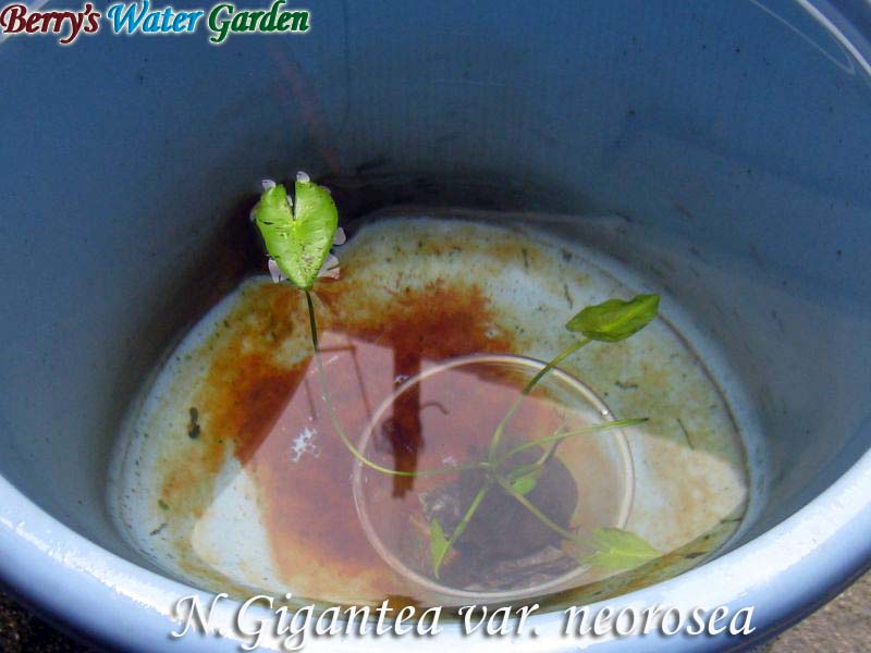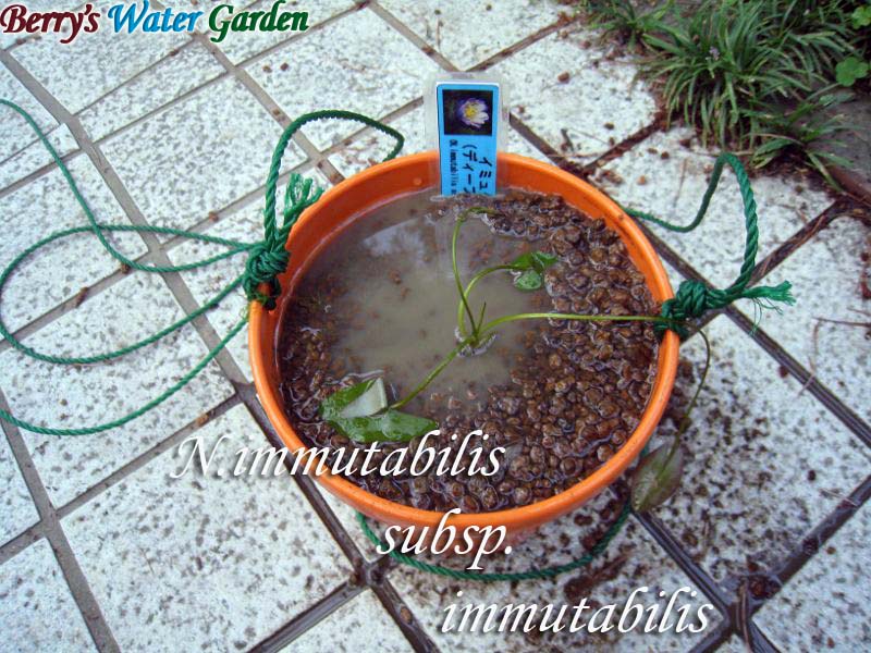 浮葉が成長して、新しい根が出だしたので用土に植え込み、水瓶に沈めました。 |