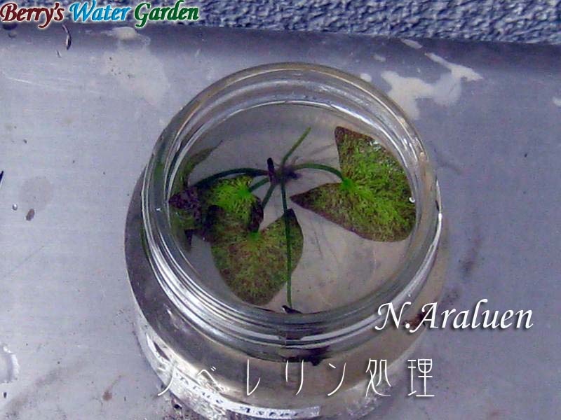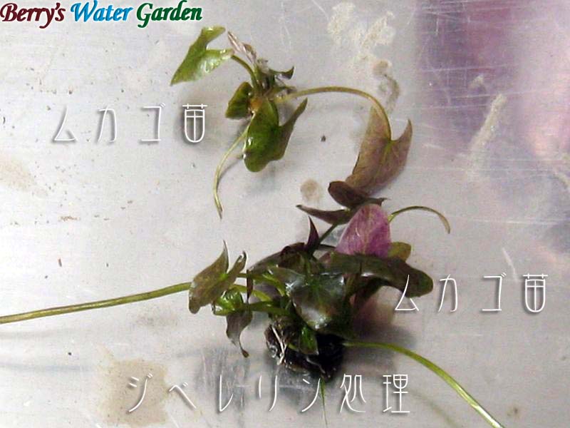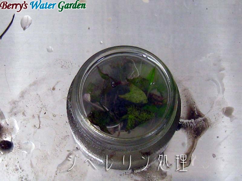| 内容 | ジベレリン処理から約1週間後の様子、イムタビリスの浮葉が伸びて発根しています。 |