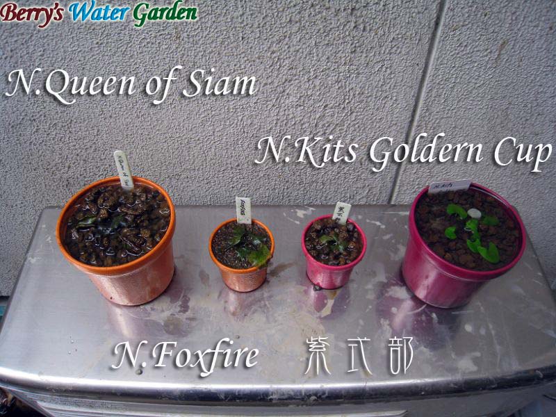 | 内容 | N.Golden West 紫式部 N.Golden Westは水中葉のままで浮葉がでてきていません。 紫式部はムカゴ苗と同じ状態です。 |