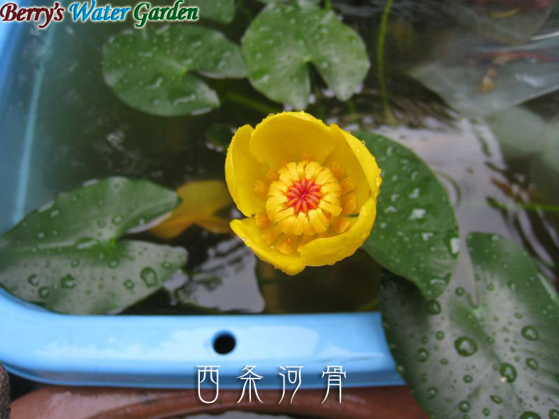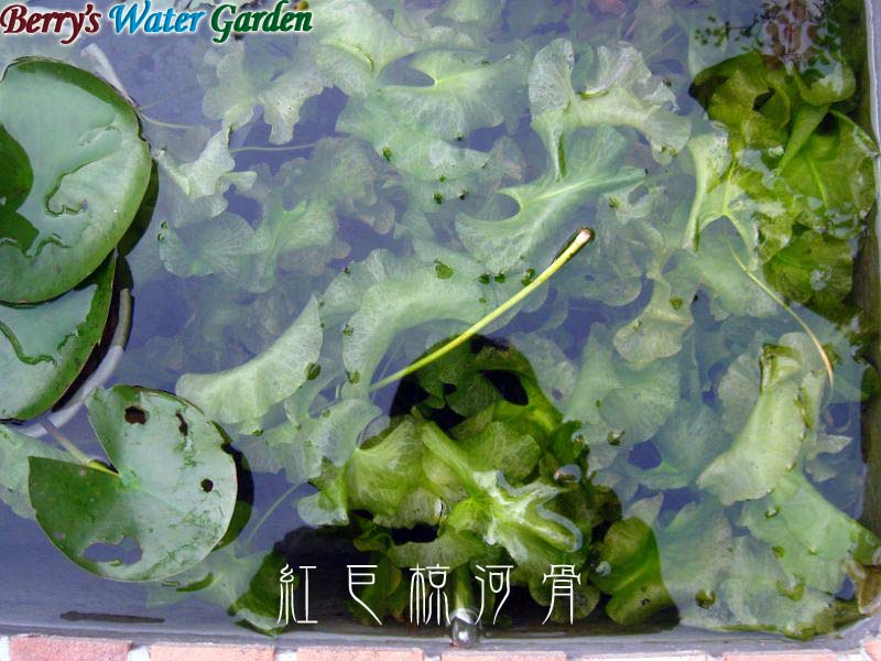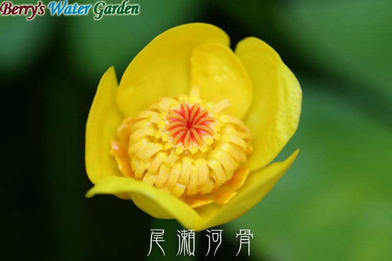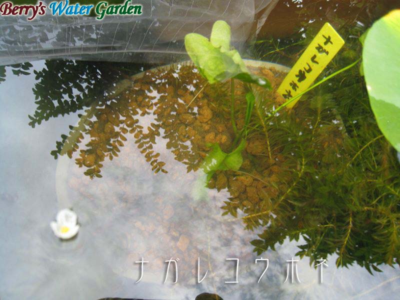 巨椋河骨の変種、沈水葉と浮葉にて生育し柱頭盤は赤色。広島県の東広島市周辺の西条盆地と高知県仁淀川水系の奥田川に自生。 |